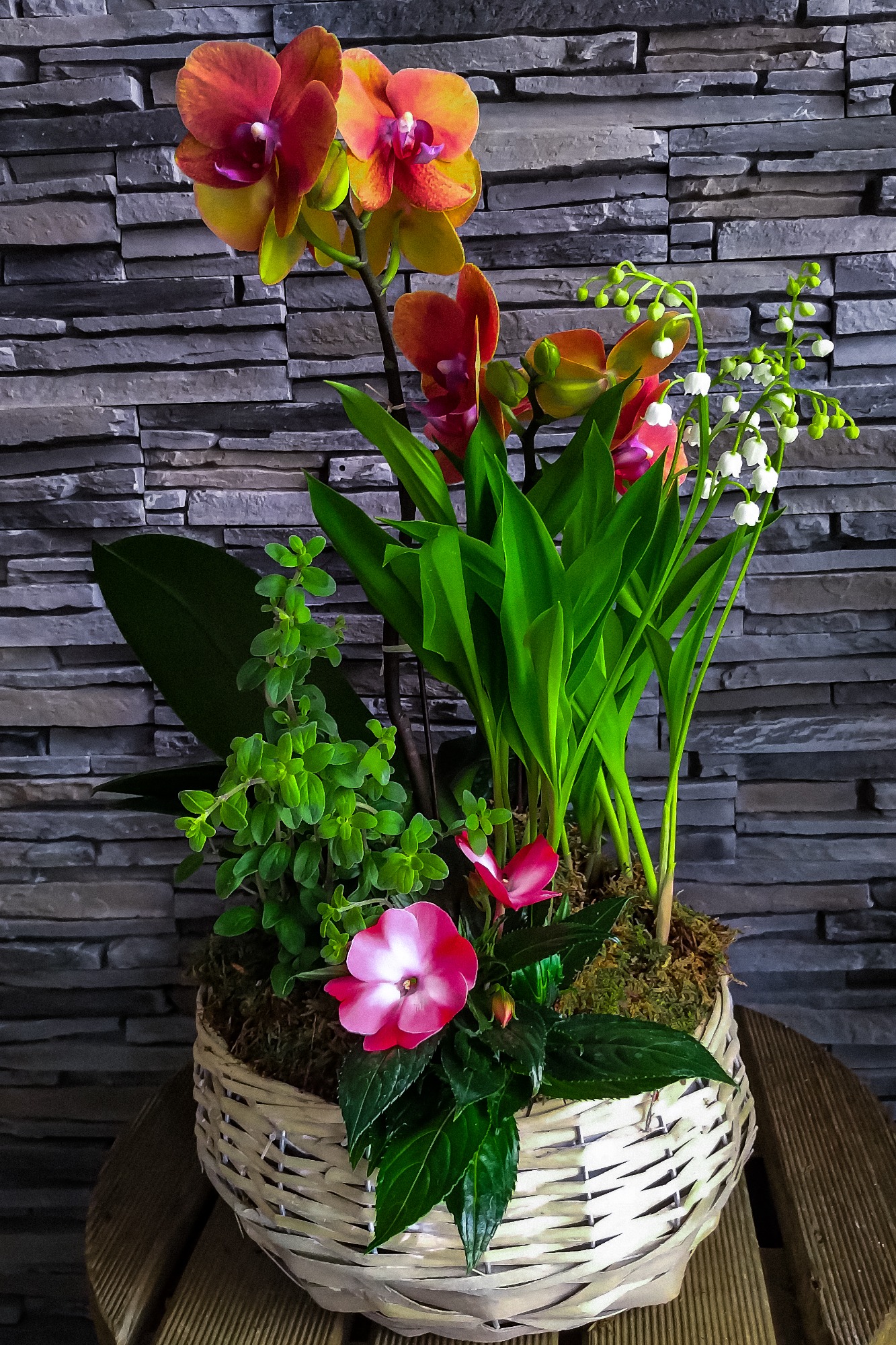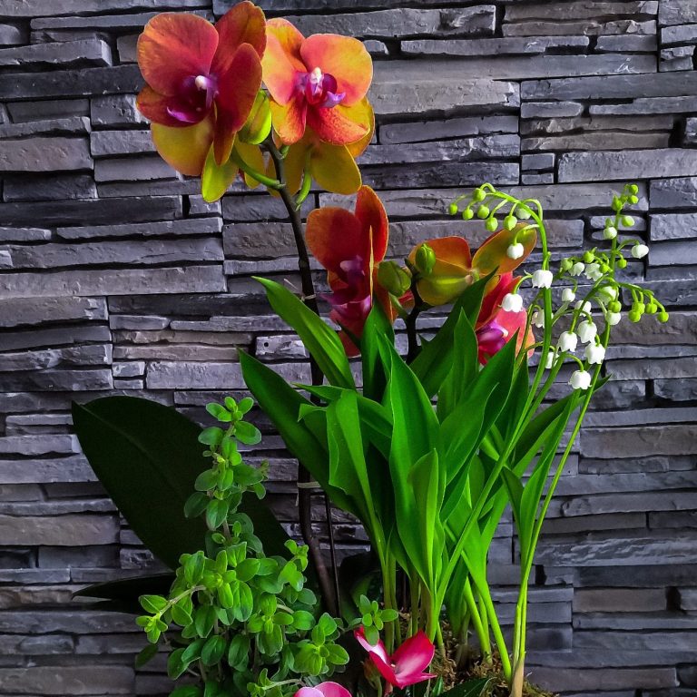 Dans un panier ou un autre contenant, plantées dans de la mousse humidifiée, les fleurs se concentre tel un petit ilot de nature.